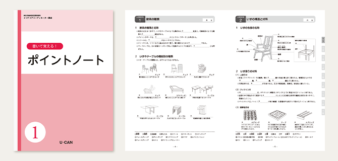 ユーキャンの「インテリアコーディネーター」講座では、過去の試験問題を徹底的に分析し、ポイントを絞って構成されたテキストを使用。二次試験の論文についても合否のポイントをやさしく指導します。さらに、講義映像を併用することで、文字だけではわかりづらい知識も習得でき、試験突破力により磨きをかけられます。