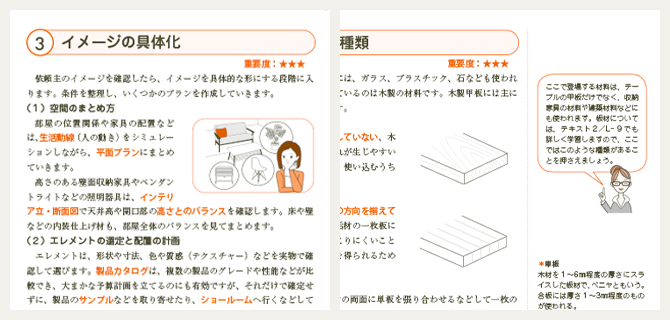 学習の中心となる全3冊のテキスト。図解やイラストが豊富でわかりやすく、初めての方でも安心です!レッスンの冒頭では各章ごとに学習内容をピックアップ。スムーズにレッスンに入れます。欄外には補足や専門用語の詳しい解説も付いているので、効率よく学習を進めていけます。