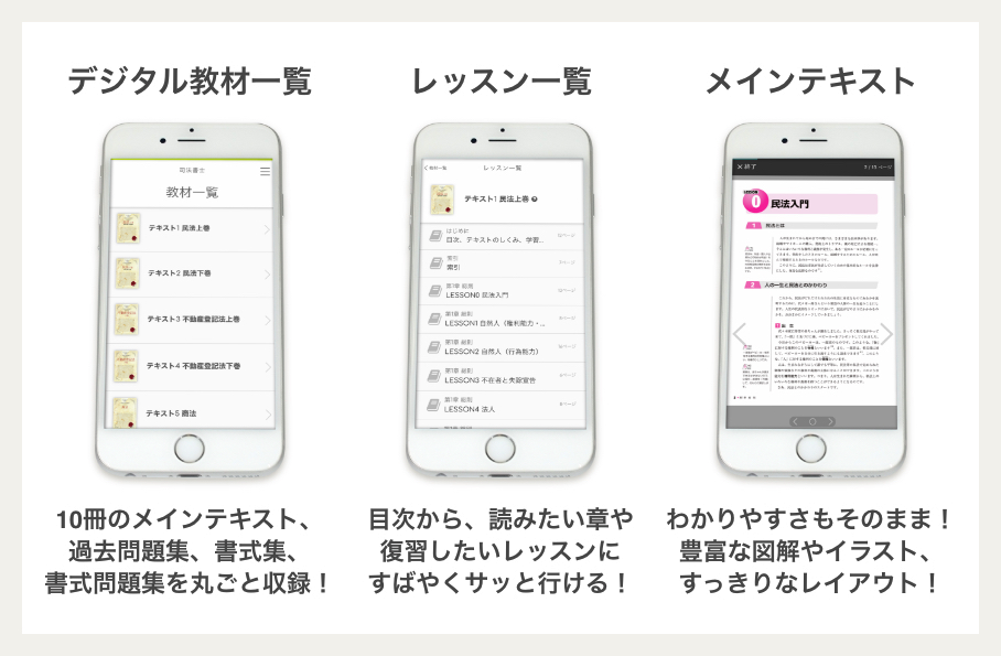 紙の教材にプラスして、あなたのスマホやタブレットでご利用いただけるデジタルテキストもセットに!メインテキストや問題集などを丸ごと収録しています。