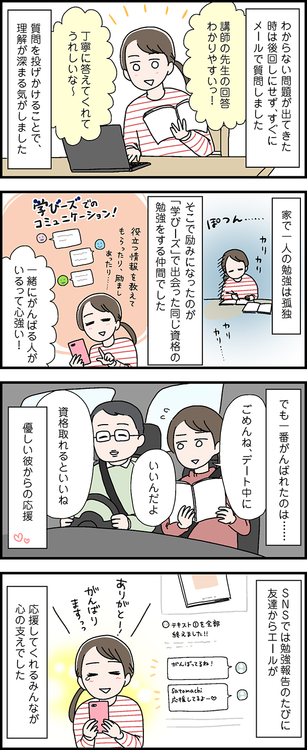 ※この体験談は「学びーズ」「マナトピ」内で行われた『“学びストーリー”投稿キャンペーン』で投稿された受講生の体験談をマンガにしたものです(現在、上記サービスは終了しております)。受講生のプロフィールは取材時のものです。また、学習効果には個人差があります。
