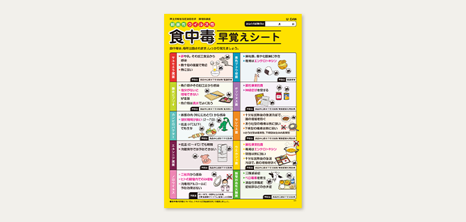 そこで、暗記ポイントを気軽にチェックできる「早覚えシート」をご用意!試験勉強にはもちろん、ご家庭での食中毒予防にも役立ちます。