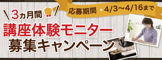 ユーキャンコミュニティ「学びーズ」では、 2017年4月3日(月)より『講座体験モニター募集キャンペーン』を開始します。 ユーキャンの講座を無料で体験いただき、 3ヵ月間レポートの提出にご協力いただけるモニター会員を、 5名募集いたします。