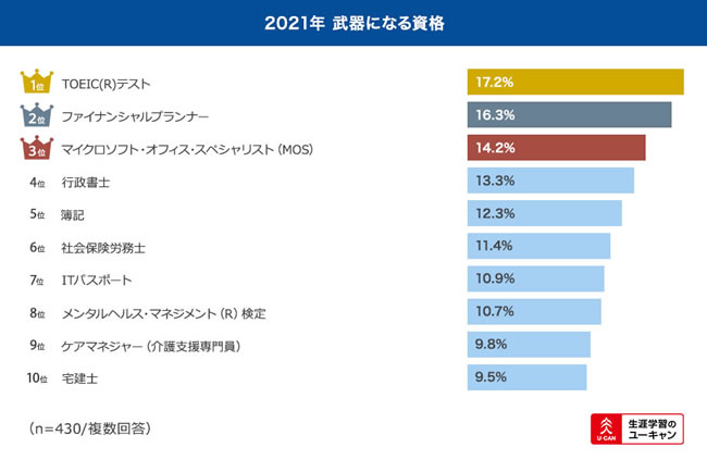 2021年、武器になる資格No.1は3年連続で「TOEIC(R)テスト」!