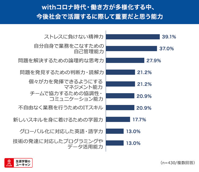 withコロナ時代に活躍するために重要な能力、1位は「ストレスに負けない精神力」!