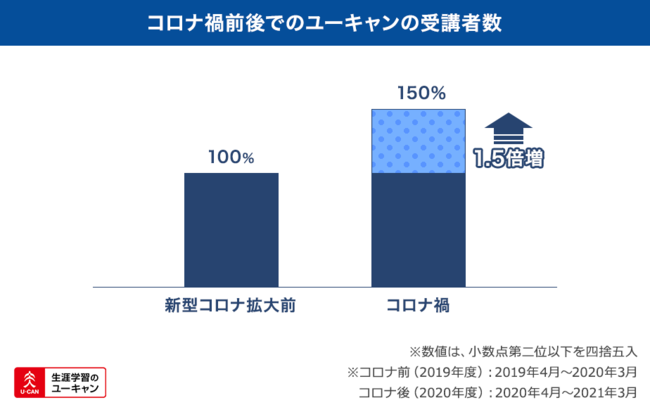 【トピックス2】コロナ前後を比較し、ユーキャンの受講者数は1.5倍に!なんとコロナ前と比較し2.7倍に増えた講座も