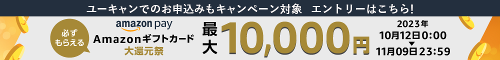 Amazonにおいて、事前エントリーの上、期間中に対象のECサイトでAmazon Payを利用して税込1,000円以上のお買い物をした方全員に、Amazonギフトカードをプレゼントする「Amazonギフトカード大還元祭」がスタートしました。生涯学習のユーキャン(https://www.u-can.co.jp/)でのお申込みもキャンペーン対象となります!ギフトカードは1等から4等まで用意され、1等は10,000円分のAmazonギフトカードがプレゼントされます。