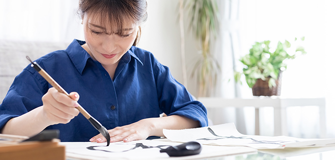 当講座は、基礎から一度、筆文字の書き方をしっかり身につけたい方にぴったり!美しい筆文字は、一度習得すれば生涯役立つ財産です。年賀状、祝儀袋の表書きなど、あらたまった場面で筆を上手に使えるように。教材には「特選書道用具15点」もセット。届いたその日からすぐに書道が始められます。“暮らしに役立つ実用性”と“心癒される趣深さ”2つの魅力を存分に、ご自宅で。