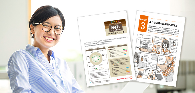 トレーニング前に、性格傾向や心の健康度を分析する「Selfメントレチェック」も好評!簡単にできて即効性が期待できるリラクセーション法も副教材でお届けします。