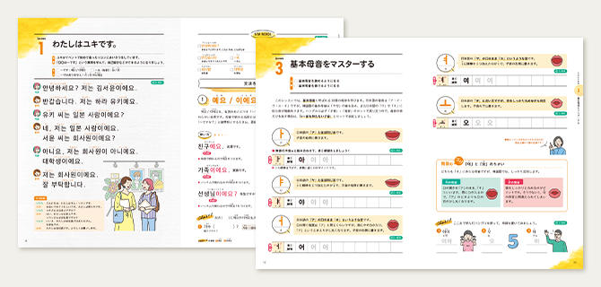 わたしも皆さんと同じように、ハングルがまったく読めない状態から韓国語の学習を始め、少しずつ韓国の人と話せることにワクワクしたものです。本講座は、経験豊富でハートの温かい先生方が、皆さんのお顔を思い浮かべながら執筆、制作しました。この教材の学習を終了するころには、基本会話ができるようになっているでしょう。