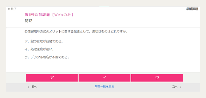 科目A試験、B試験対策のそれぞれに添削課題(WEB)をご用意。試験レベルに合わせた実践的な問題なので、科目ごとの総復習に役立ちます。