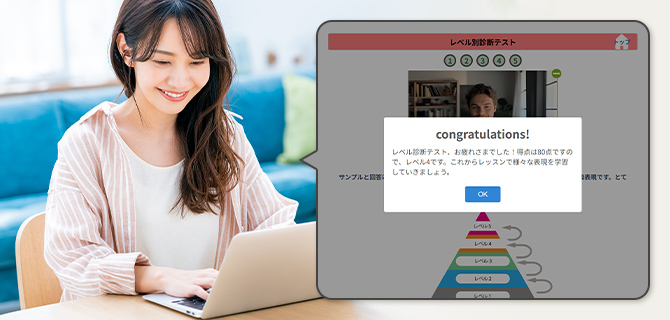 受講期間中、レベル別診断テストは何度でもチャレンジOK! 上達を実感しながら、楽しく学習が進められます。