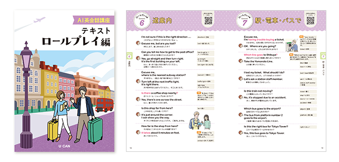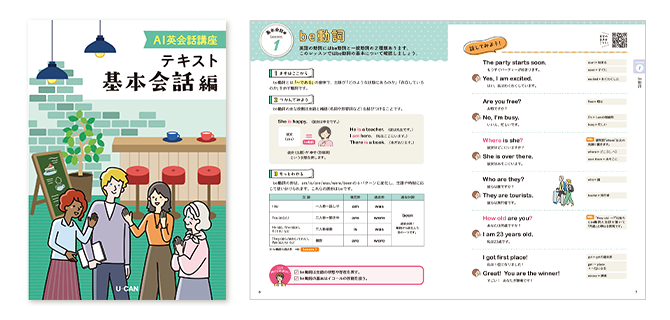 「U-CAN TALK」 と内容が連動したテキストで、AI講師と話す前に基本の文法が学べます。初心者レベルの方も安心です。