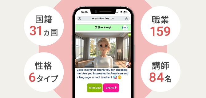 フリートーク機能では、好みの講師を選んだり、興味のある話題で多彩な会話を楽しんだり。飽きずに練習が続けられるので、自然と英会話の幅が広がります。