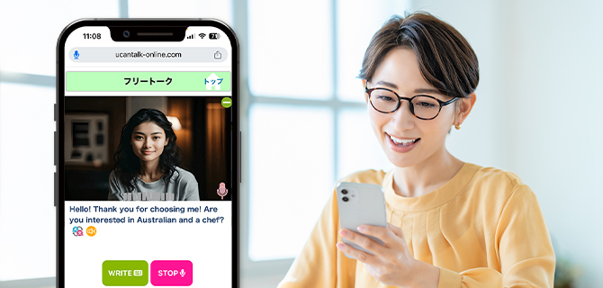 まずは、AI英会話学習システム「U-CAN TALK」の​「レベル別診断テスト」で“今”の英会話力をチェック。レベルにあわせたレッスンで、手応えを感じながら楽しく着実にレベルアップ!