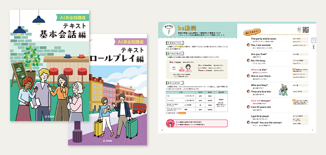 テキストは「U-CAN TALK」の基本レッスンと同じタイトルで「基本会話編」「ロールプレイ編」の2冊をご用意。