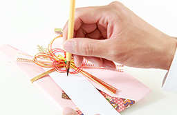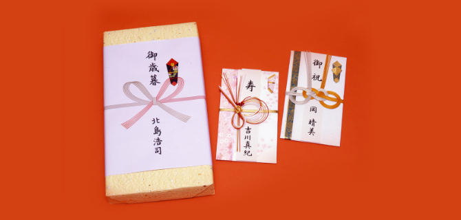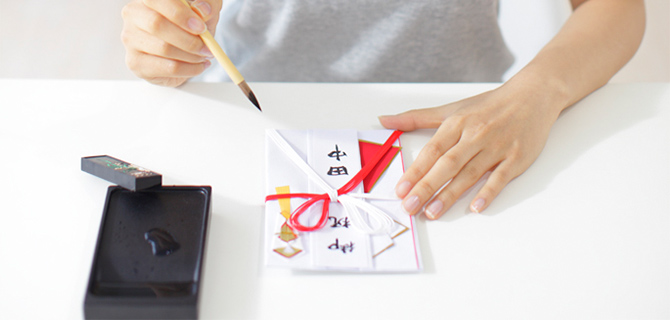 テキスト2「実用の書」で、いよいよ実践的なレッスンへ。祝儀・不祝儀袋の表書きやお中元、お歳暮など贈り物の表書きなど、暮らしで役立つ筆文字をレッスンします。