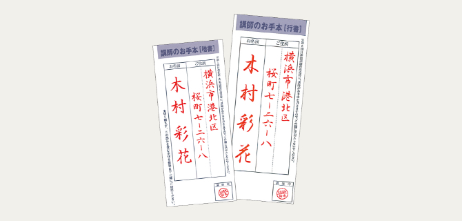 人生の中で最も書く機会の多い名前と住所。講師直筆のあなたのご住所・お名前手本を第1回目の添削返送時にお届けします。