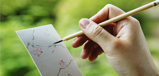 結婚式の祝儀袋や芳名録など、日常で筆文字を使う機会は意外と多いものです。当講座では、季節のお便りから贈り物の表書きなど、暮らしの節目で役立つ小筆文字について、基礎的なテクニックを一からしっかりと学んでいきます。美しい筆文字を書く楽しみを味わえるのはもちろんのこと、冠婚葬祭などの際、自信を持ってすらすらと書けるようになります。レッスンに必要な書道用具をプレゼント! 届いたその日からすぐ暮らしに役立つ筆文字を学習できるカリキュラムです。