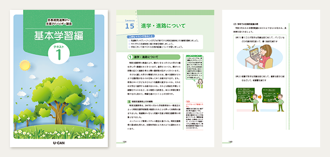 メインテキストは2冊。まずはテキスト1「基本学習編」で、発達障がいやグレーゾーンの基本知識を学習。進級や進路、成長・自立に向けたサポートのノウハウを理解!