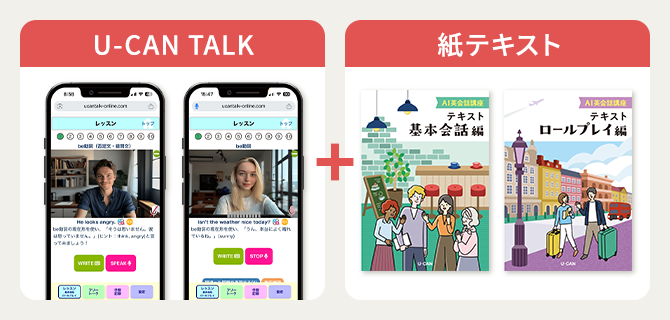 テキストで学んでから「U-CAN TALK」でAI講師とレッスンすることで会話に集中でき、しっかり英会話が定着します。