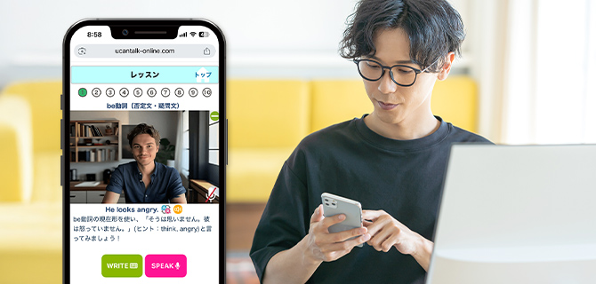 「U-CAN TALK」なら、24時間、いつ・どこでもAI講師とレッスンできるので、お仕事や家事でお忙しい方でも続けやすい!