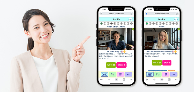 まずは、AI英会話学習システム「U-CAN TALK」の​「レベル別診断テスト」で“今”の英会話力をチェック。レベルにあわせたレッスンで、手応えを感じながら楽しく着実にレベルアップ!