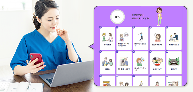 スキマ時間に思い立ったらすぐ取り組めて、好きなだけ練習できることから、英語で話せるフレーズが自然と増えていきます。