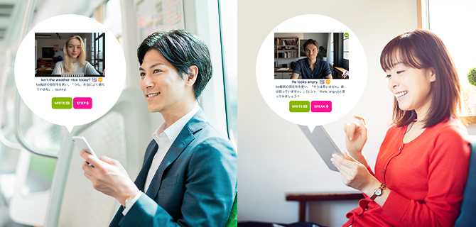 あなたが話した英語をAIが解析し回答を生成するので、レベルや好みに合わせて自由に会話したり、即フィードバックが受けられたり、まるでネイティブの先生とマンツーマンレッスンをしているかのよう!