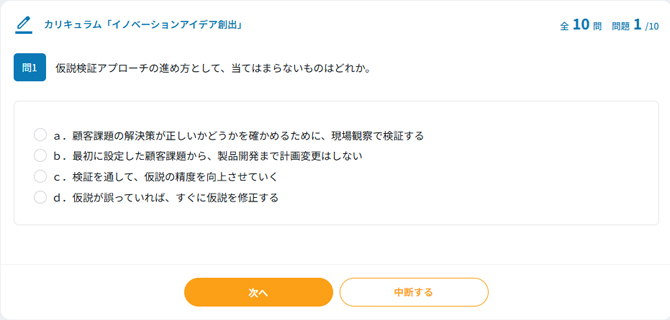 学んだ知識の最終確認としてはもちろん、学習の前後でどれだけ成長したか、事前テストと事後テストの成績を比較することができます。学習後にスキルアップを実感することで、実務に向けてのモチベーションアップにつながります。