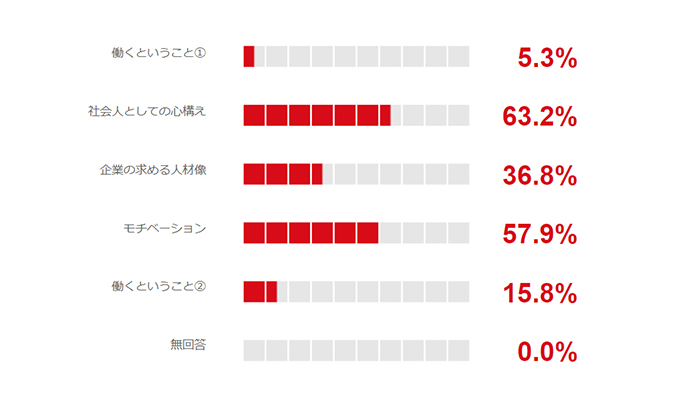 | セミナー内容 | ●1日目:マインドセット編 働くうえで大切なことは何か、社会人としての心構えが身につく ●2日目:ビジネスマナー編 ロールプレイを交えながらビジネスマナーの大切さを理解する |