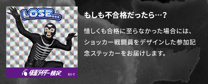合格すると特製の合格証が授与され、あなたの仮面ライダー愛の証になります。