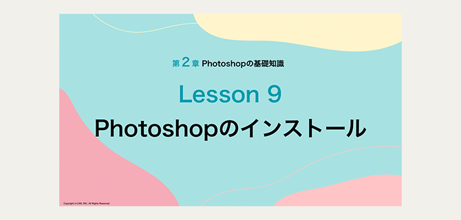 学習内容には、「Photoshopのインストール」や「よく使うツールの操作方法」などもご用意!